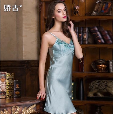 娇古 真丝睡衣女夏天性感纯色吊带睡裙 桑蚕丝绸蕾丝睡裙家居服