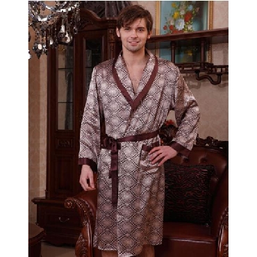 娇古 新款男士夏季长袖真丝睡衣睡袍浴袍高贵桑蚕丝丝绸家居服 L(155-165)