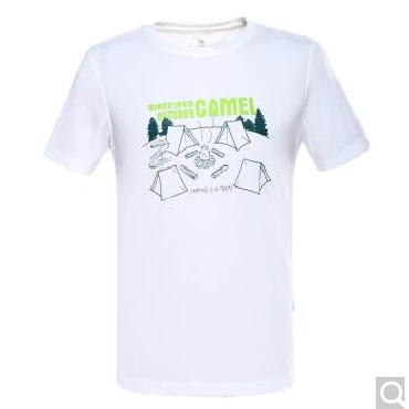 【2017新品】骆驼(CAMEL)户外速干T恤 范冰冰同款男女圆领短袖轻薄透气休闲速干衣 白色(男款