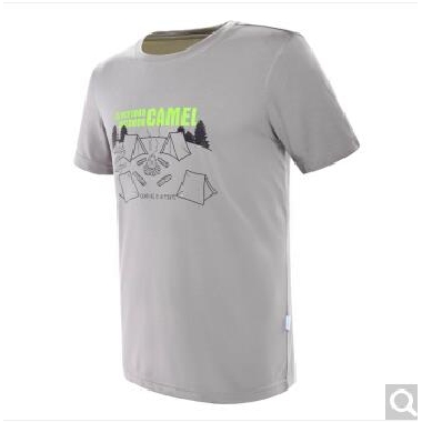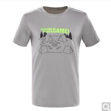 【2017新品】骆驼(CAMEL)户外速干T恤 范冰冰同款男女圆领短袖轻薄透气休闲速干衣 灰色(男款