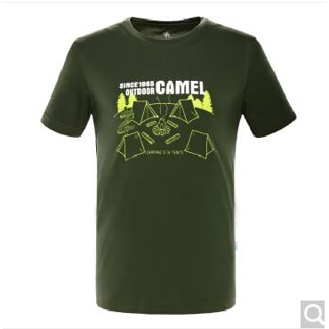 【2017新品】骆驼(CAMEL)户外速干T恤 范冰冰同款男女圆领短袖轻薄透气休闲速干衣 军绿(男款
