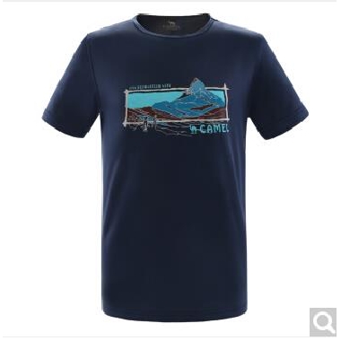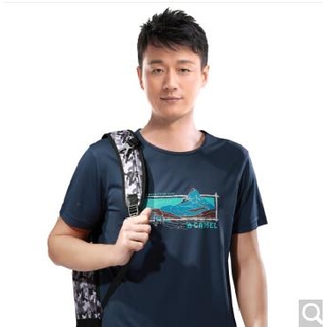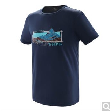 【2017新品】骆驼(CAMEL)户外速干T恤 范冰冰同款男女圆领短袖轻薄透气休闲速干衣 深宝蓝(男