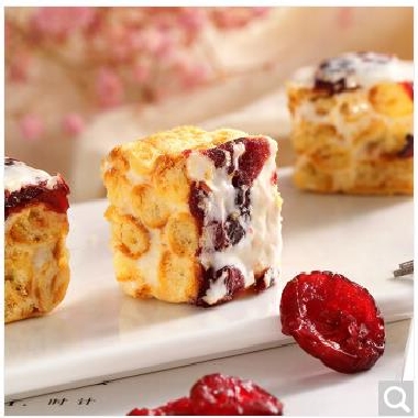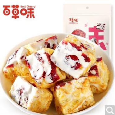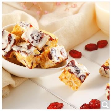 百草味 牛轧奶芙160gx2袋 沙琪玛牛轧糖 休闲零食早餐蛋糕点心糖果 蔓越莓味
