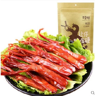 【百草味-五香味麻辣鸭舌头100g】温州特产零食小吃 酱卤熟食