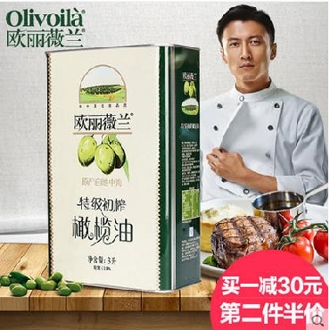 【第二份半价】欧丽薇兰特级初榨橄榄油3L铁罐装食用油凉拌橄榄油