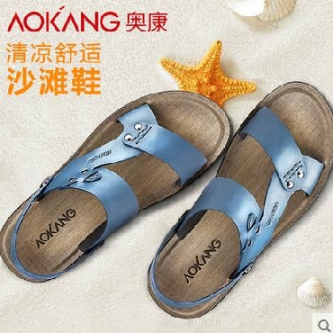 奥康凉鞋男透气正品真皮 休闲鞋夏季新款男鞋 英伦防滑沙滩鞋拖鞋