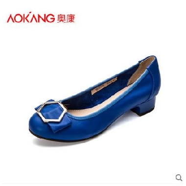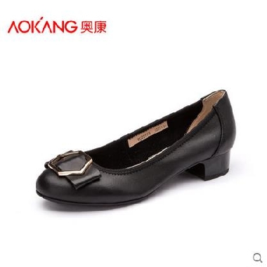 • 奥康女鞋 2017秋季新品尖头小细跟浅口牛皮职场商务高跟鞋女通勤