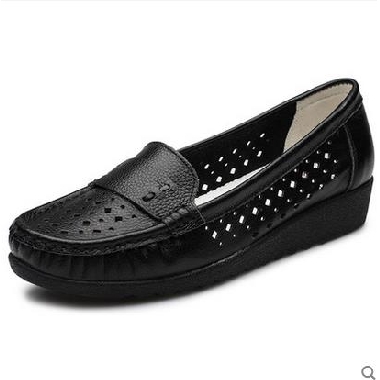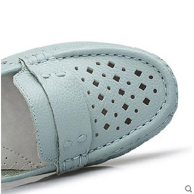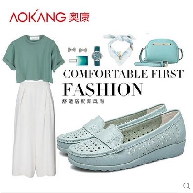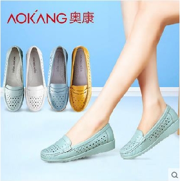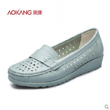 奥康女鞋新款真皮平底单鞋女休闲洞洞透气洞洞甜美女妈妈鞋单鞋女