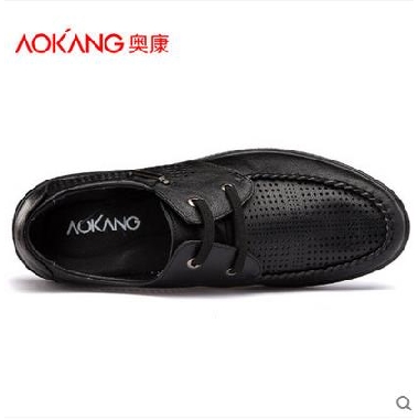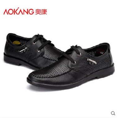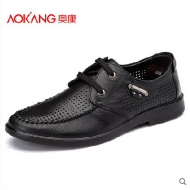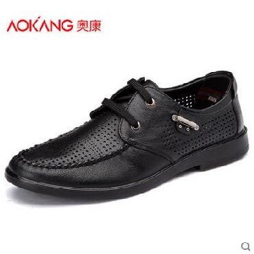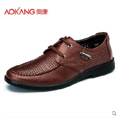 奥康官方旗舰店 男鞋夏季商务休闲真皮圆头软面系带镂空皮鞋透气