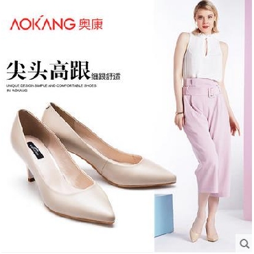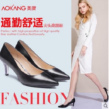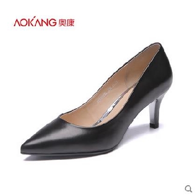 • 奥康女鞋 2017秋季新品尖头小细跟浅口牛皮职场商务高跟鞋女通勤