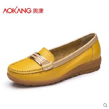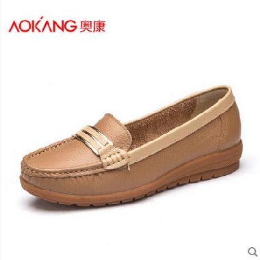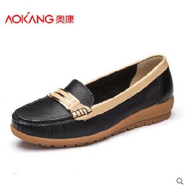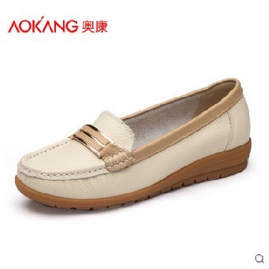 奥康女鞋平底套脚休闲皮鞋一脚蹬牛皮护士鞋孕妇鞋子女单鞋子