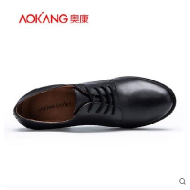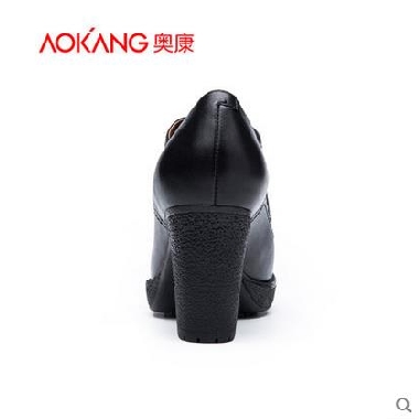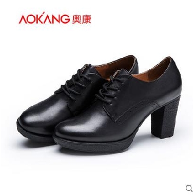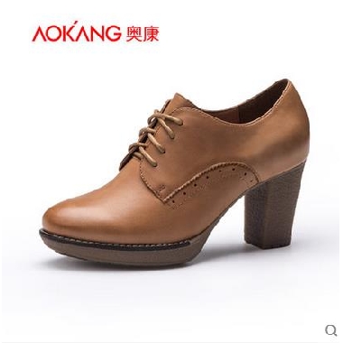 奥康女鞋 秋季新款牛皮高跟系带及踝单鞋尖头简约中口低帮鞋
