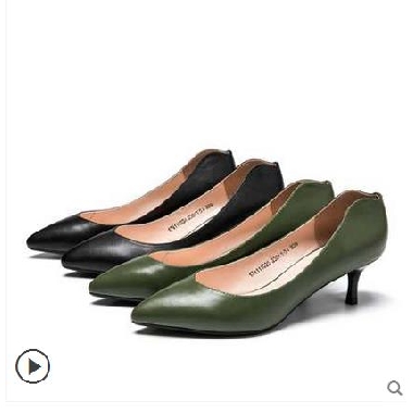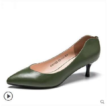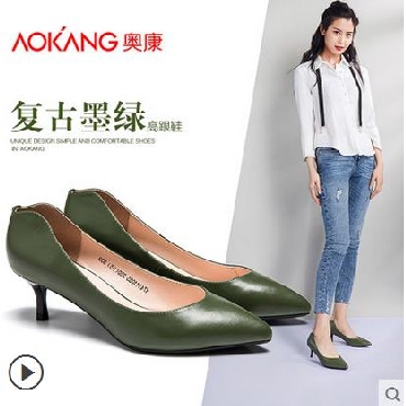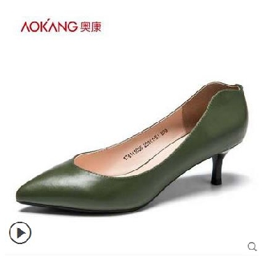 • 奥康女鞋 2017秋季新品尖头小细跟浅口牛皮职场商务高跟鞋女通勤