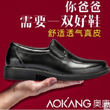 • 奥康男鞋套脚皮鞋 男真皮商务休闲皮鞋舒适透气牛皮爸爸鞋男皮鞋