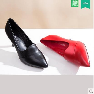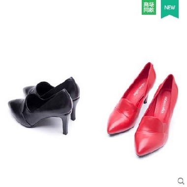 • 奥康女鞋 2017秋季新品尖头小细跟浅口牛皮职场商务高跟鞋女通勤
