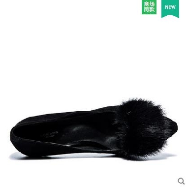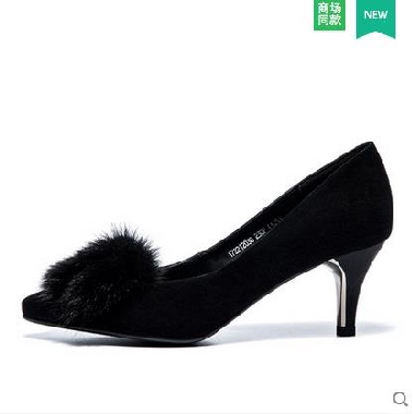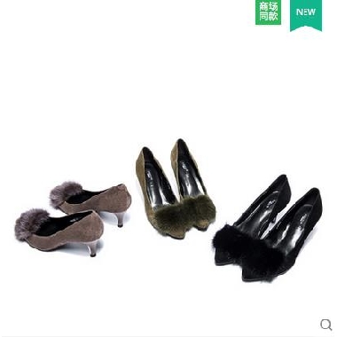 • 奥康女鞋 2017秋季新品尖头细高跟带毛简约时尚单鞋低帮鞋女正装
