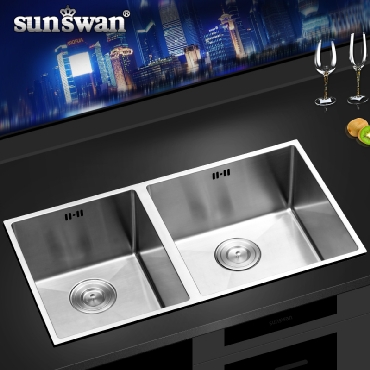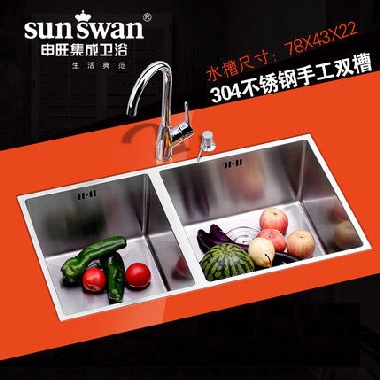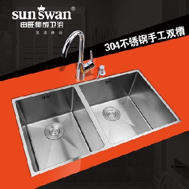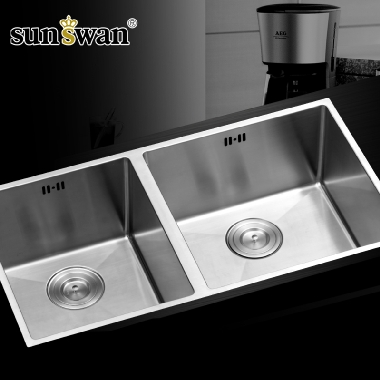 申旺大手工水槽双槽套餐 304加厚不锈钢拉丝洗菜盆厨房台下盆厨盆