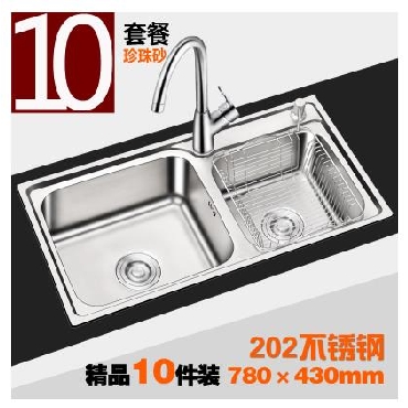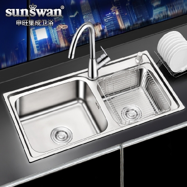 申旺304加厚不锈钢水槽双槽套餐 拉丝一体成型大厨房洗菜盆洗碗池