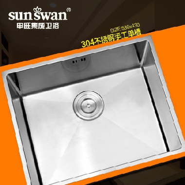 申旺水槽单槽套餐 304拉丝加厚不锈钢手工大水池 厨房洗菜盆厨盆