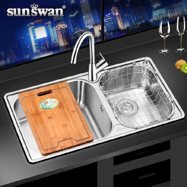 申旺厨房水槽 304不锈钢洗菜盆 水盆单槽套餐 加厚一体成型圆槽
