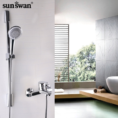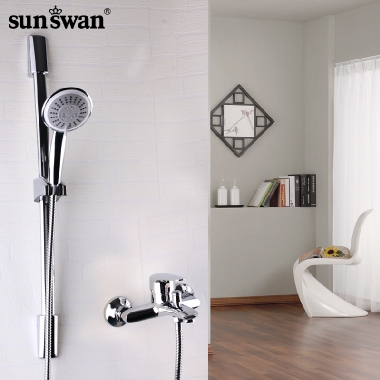 • 申旺简易花洒套装 升降手持喷头 全铜冷热淋浴器浴缸龙头混水阀