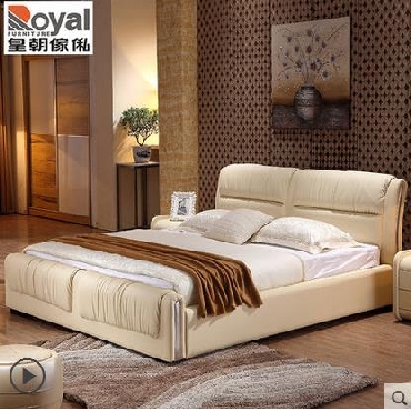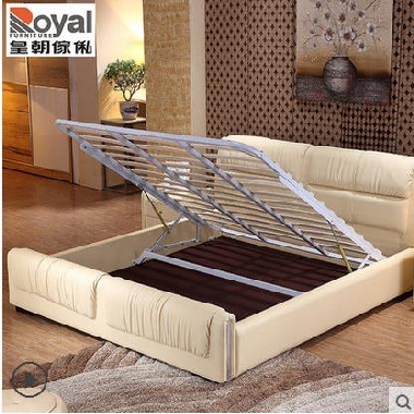 皇朝家私 简约现代皮艺床婚床小户型双人卧室高箱床软床皮匠空间