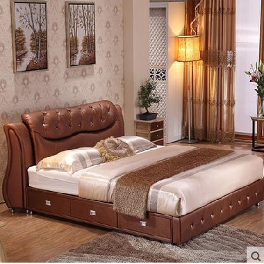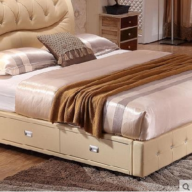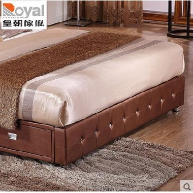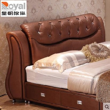 皇朝家私 欧式软床 牛皮双人软床 储物皮艺床(暖阳)