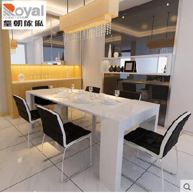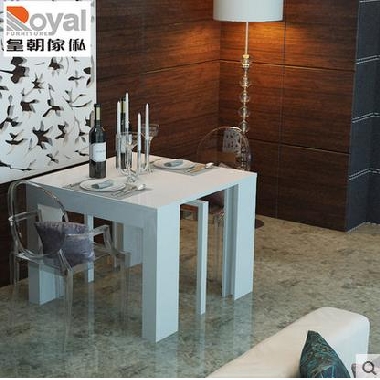 皇朝家私 现代简约伸缩餐桌 小户型白色烤漆餐桌餐台饭桌