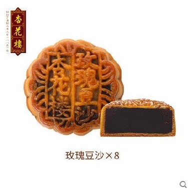 杏花楼 特制玫瑰豆沙月饼礼盒800g 广式月饼纸盒传统糕点上海特产 招牌月饼 特制馅料