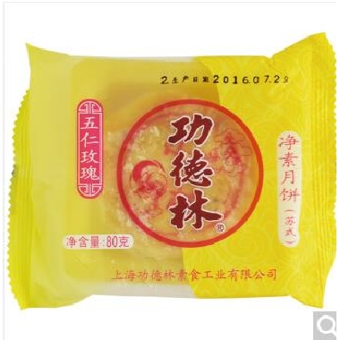 中华老字号 上海特产 功德林-单只装素食月饼(五仁玫瑰味)80g