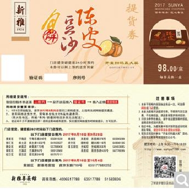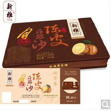 杏花楼集团新雅月饼券陈年陈皮豆沙月饼礼盒票中秋团购券上海包邮