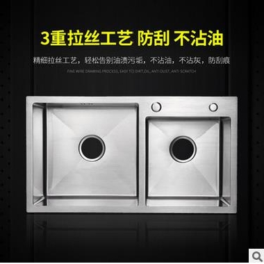 昂骏sus304不锈钢水槽双槽 食品级7843手工水槽厨房洗菜盆
