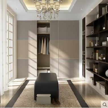 欧派现代简约布拉格整体走入式衣柜推拉门卧室衣帽间设计定做