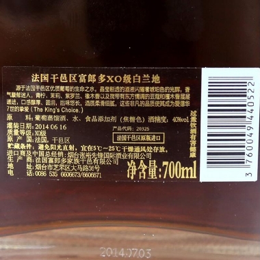 张裕 法国干邑区 富郎多XO级白兰地【张裕先锋,原瓶进口】 50020326