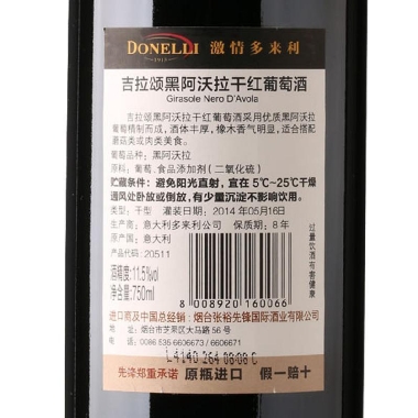 张裕 意大利多来利吉拉颂黑阿沃拉干红葡萄酒【张裕先锋进口】【整箱】750ml6