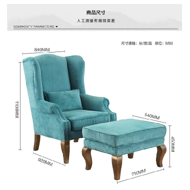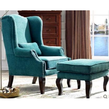 美式沙发椅布艺单人老虎椅脚踏组合乡村简约书房客厅椅子休闲椅