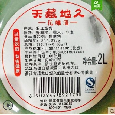 古越龙山 绍兴黄酒 天藏地久 花雕酒 2L坛装