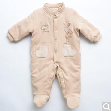 gretton绿典彩棉小脚丫爬行服爬爬衣衣包脚服有机棉童装儿童装男女童A2PBY101 棕色