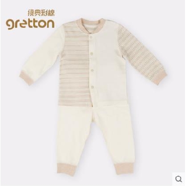 gretton绿典彩棉宝宝套装2018春季新品长袖开衫套纯棉儿童睡衣