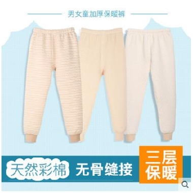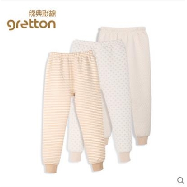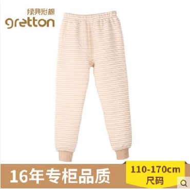 gretton绿典彩棉儿童三层保暖裤加厚男童春秋冬季女童棉毛裤薄款天然彩棉 舒适保暖 三层加厚 无骨