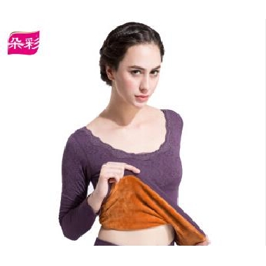 • Docare朵彩蕾丝花边紧身保暖内衣加厚加绒女士塑身圆领内衣套装