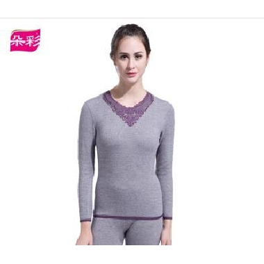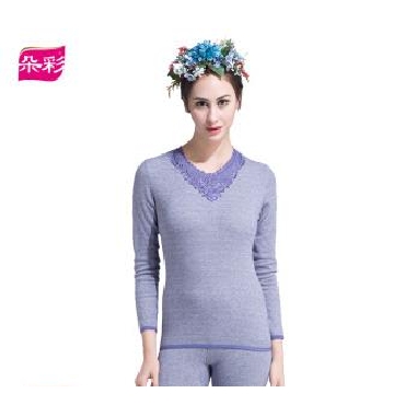 • Docare朵彩蕾丝花边紧身保暖内衣加厚加绒女士塑身圆领内衣套装