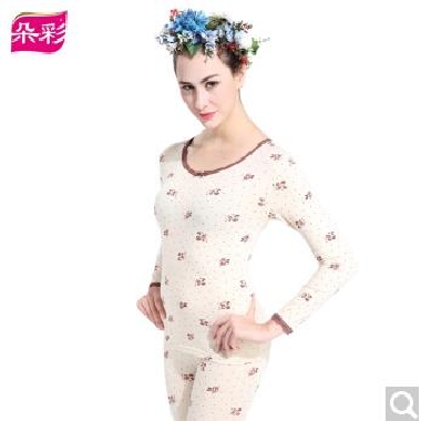 朵彩薄款棉秋衣秋裤女套装 圆领碎花小清新女生保暖内衣套装 基础打底贴身内衣