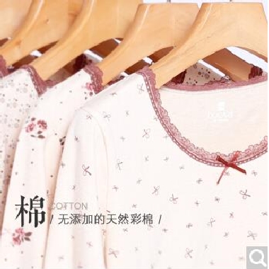 • 朵彩薄款棉秋衣秋裤女套装 圆领碎花小清新女生保暖内衣套装 基础打底贴身内衣