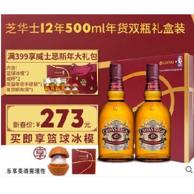 芝华士12年500ml2瓶装 进口苏格兰威士忌酒洋酒烈酒套装官方正品
