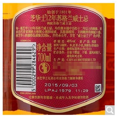芝华士(Chivas)洋酒 12年苏格兰威士忌 700ml