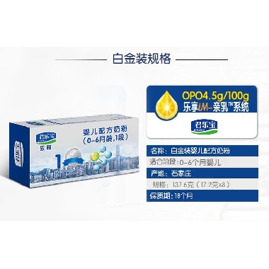 君乐宝乐铂400g盒装1段婴儿配方奶粉