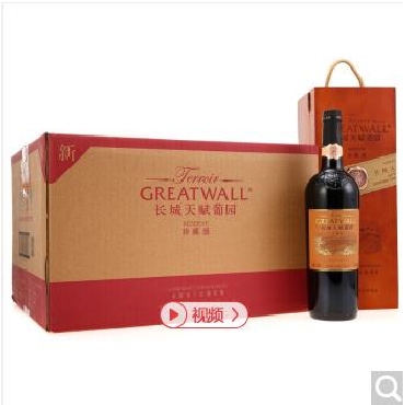 长城(GreatWall)红酒 天赋葡园珍藏级赤霞珠干红葡萄酒 整箱装 750ml*6瓶(木盒装)