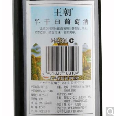 • 王朝 红酒经典半干白葡萄酒 国产干白微甜霞多丽750ml*2瓶