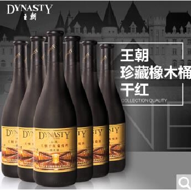 • 王朝 原装橡木桶红酒 干红葡萄酒750ml*6瓶 国产红酒整箱